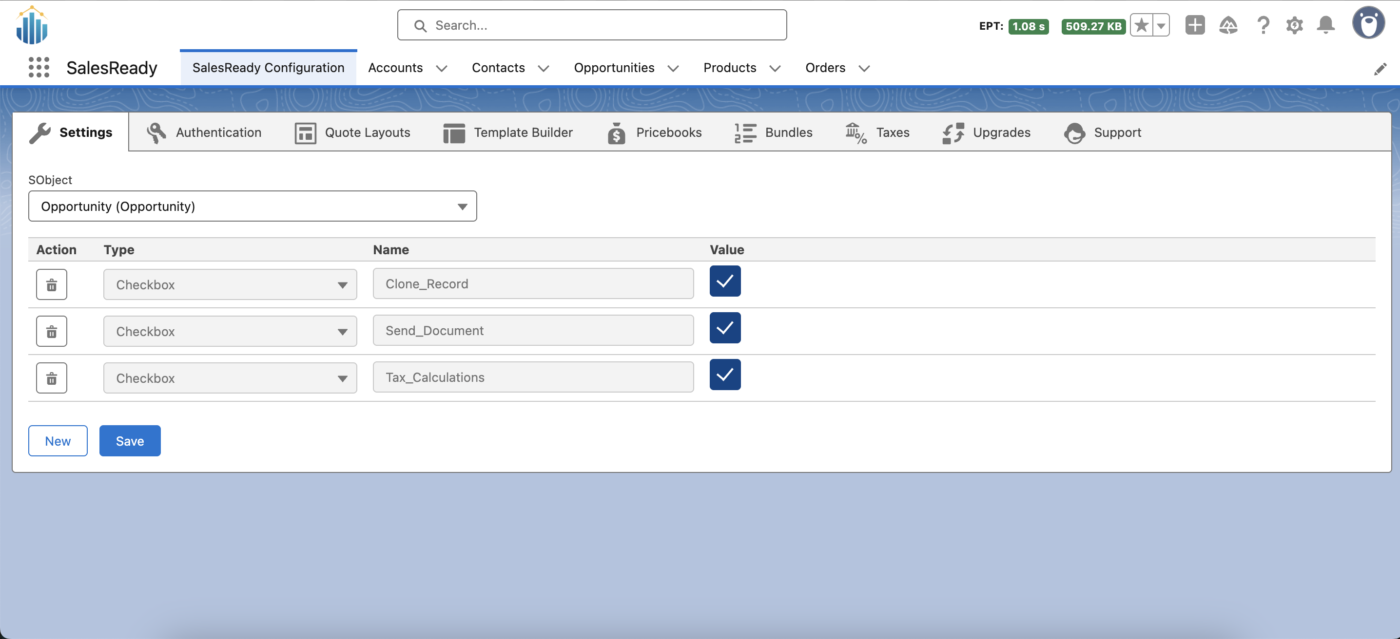 dynamic checkbox on the object where you want to calculate sales tax.This enables the Sales Tax button that gets displayed when building your quote or billing record.