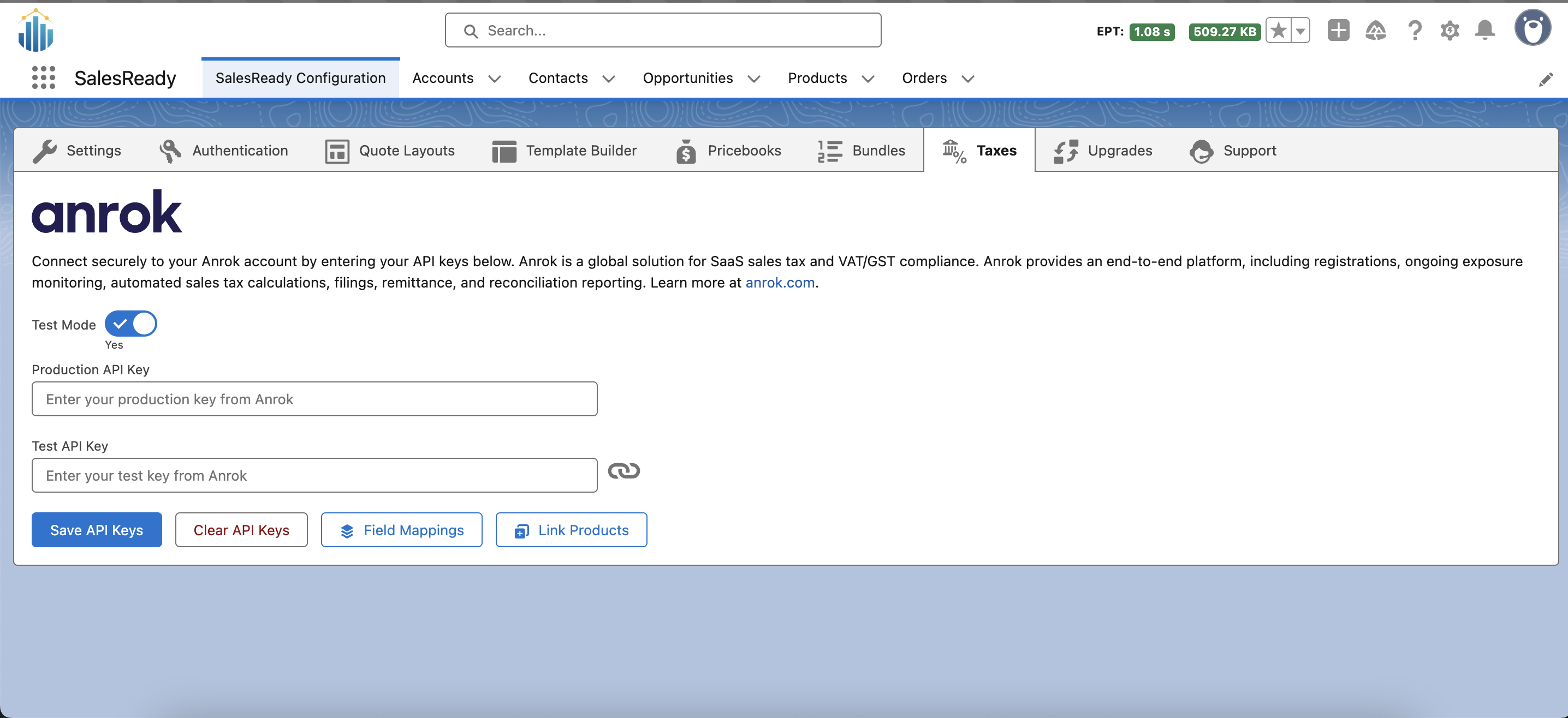 Add your API key(s) to the Taxes sub-tab within the SalesReady Configuration tab.
