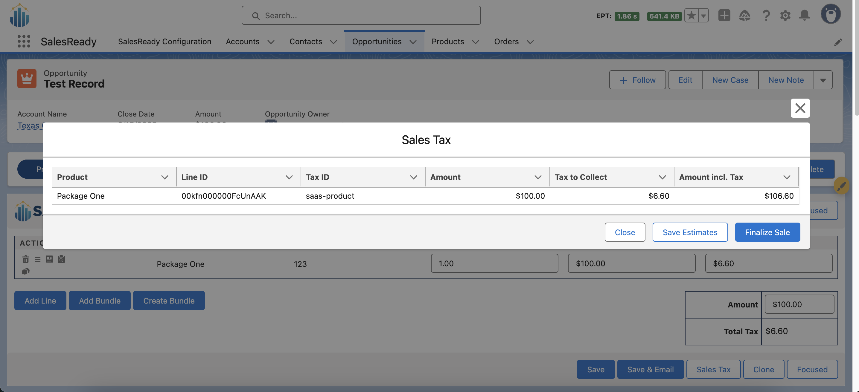 component embedded on the Lightning Record Page. For more information please go to the Quote Builder section.Confirm that the Sales Tax button is showing in the builder.