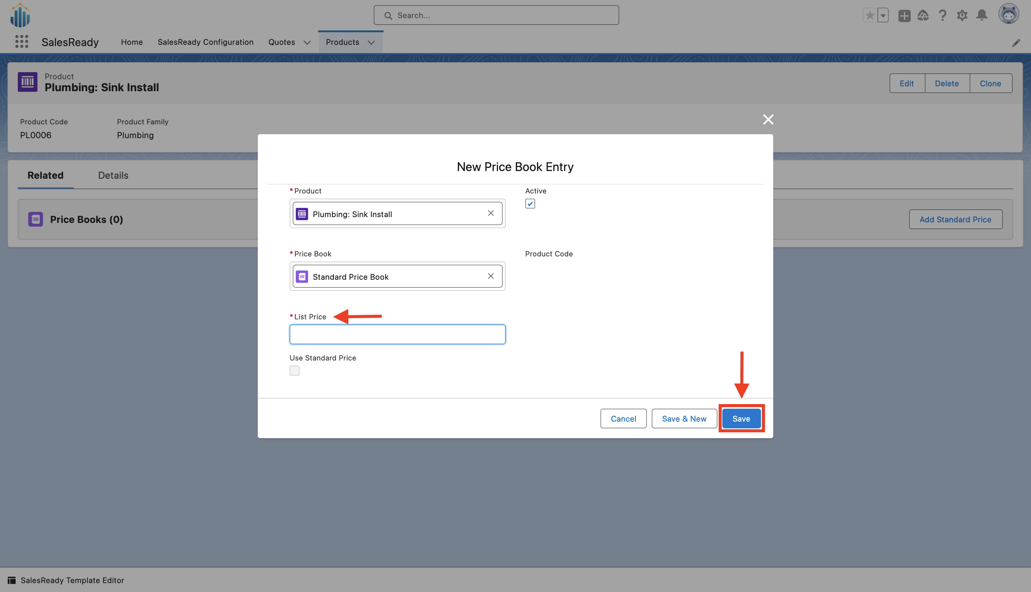 To add the priced product to a price book other than the standard price book, navigate back to the “Related” tab in the product window and click “Add to Price Book”