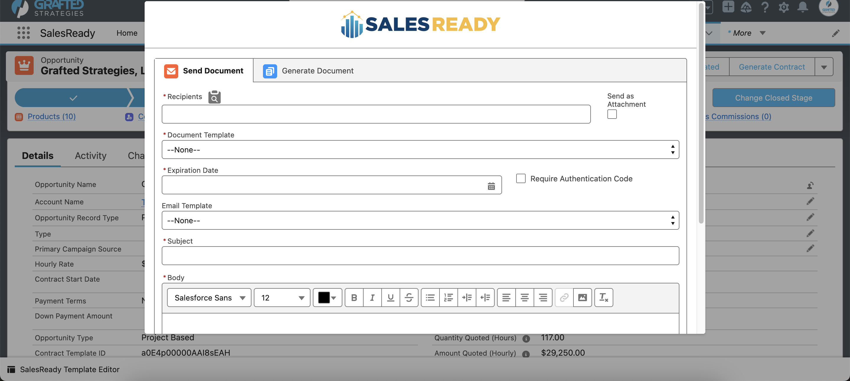 SalesReady transactions can be enabled to work from any object. In order to send for signature and utilize our web application, please note the following: